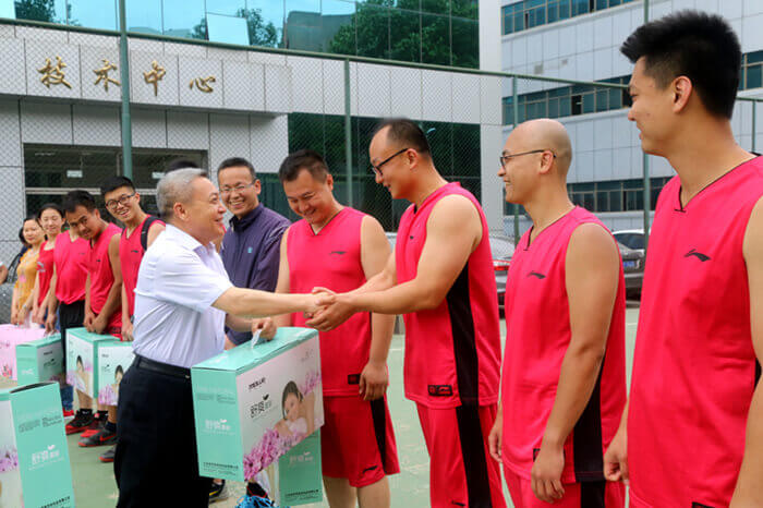 6月3日中午,郑州杨子艾美美容有限公司2016年职工篮球比赛上演巅峰对决。经过激烈比拼,职能销售队以56:22战胜东方科技,分别获冠亚军;瑞创达以37:21战胜变压器队获得季军,首次组队参赛的变压器队获得第四名。集团公司工会主席、党委副书记李成山为获奖团队颁奖。